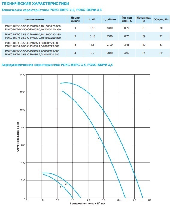Вентиляторы выпускают с двумя типами рабочих колес РК635 и РК935 с различными расходными характеристиками.
